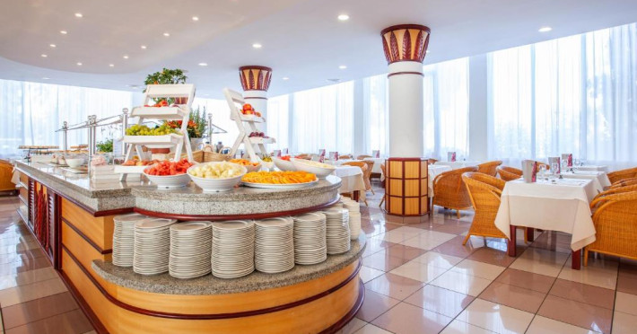 Programul de acord al hotelului include spectacole, muzică live și dans. La restaurant se oferă mese de tip bufet, cu preparate reci și calde și bucătărie deschisă, iar pe terasă există, de asemenea, un snack bar.