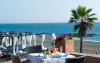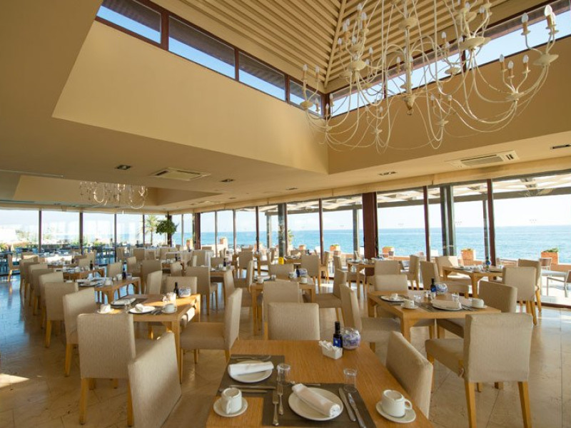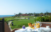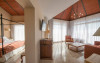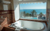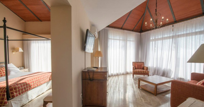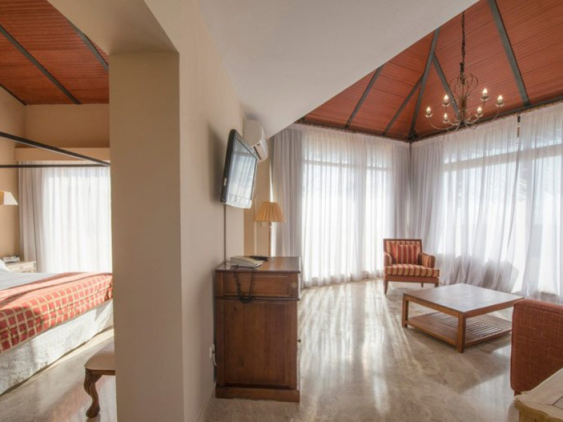 - junior suites (dormitor fara usa cu 2 paturi sau un pat matrimonial si living cu canapea, 50 mp); toate suitele au terasa cu vedere spre mare. Baia este dotata o cada cu hidromasaj, oglinda pentru machiaj, halat de baie si papuci.
