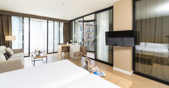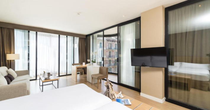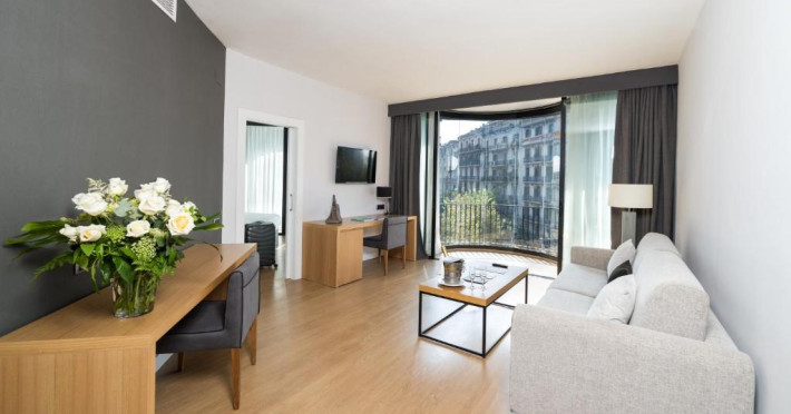 Acest hotel modern oferă suite spațioase, cu aer condiționat, zonă de relaxare separată, balcon privat, WiFi gratuit și 2 televizoare. Hotelul este la 10 minute de mers pe jos de Bulevardul Passeig de Gràcia din Barcelona.