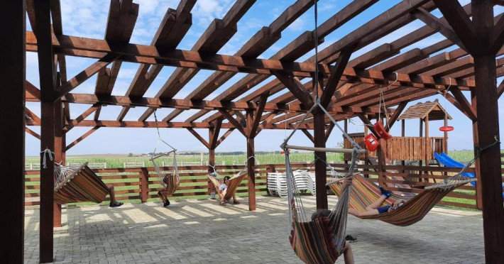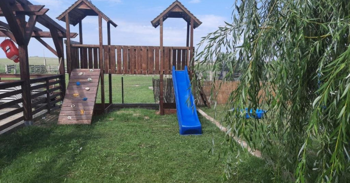 a Parcare gratuita;Copiii beneficiaza de o atentie speciala in cadrul complexului turistic. Locul de joaca cu tobogan, terasa din spate (dotata cu diverse tipuri de leagane si hamace), masa de tenis, trambulina, terenul de fotbal in iarba sau darts-ul sunt cateva dintre cele mai indragite accesorii si jocuri, de care se bucura cei mici, dar nu numai.
