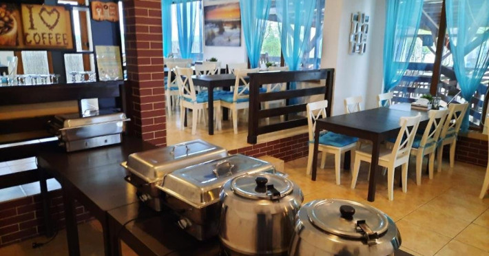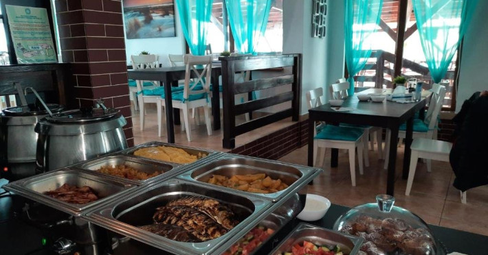 Restaurant: Meniul oferit de catre complexul turistic este gatit in special de catre bucatari specializati in preparate traditionale romanesti, in general, si lipovenesti, in special! Va invitam cu incredere sa serviti toata gama de preparate, pe care incercam sa le gatim cat mai proaspete cu putinta. In general, bucataria noastra este structurata pe doua modalitati de servire: turistilor cazati in seriile regulate le oferim mese tip bufet, iar pentru turistii care solicita meniuri personalizate, pentru evenimente gen team building-uri, tabere, nunti, botezuri, petreceri aniversare, excursii in delta de o zi etc., ne mulam pe specificul cererii, organizand de la mese a la carte si pana la preparate la protap, la pirostrie sau tip sasalac, pregatite conform cerintelor oaspetilor nostri!
