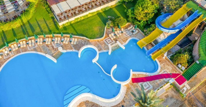 Sport si divertisment: piscine in aer liber si de interior pentru adulti si copii, trei tobogane, baie turceasca, sauna, camera de relaxare, centru fitness, baschet, volei, volei pe plaja, mini fotbal, tenis de masa, gimnastica. Contra cost: sporturi nautice, centru SPA & Wellness, masaj si tratamente de infrumusetare, terenuri de tenis si nocturna.
