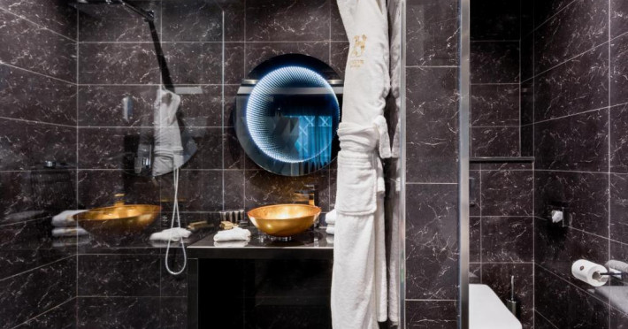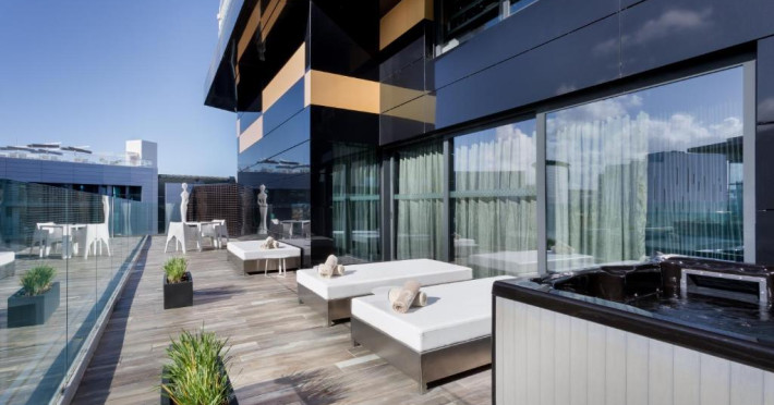 Piscina de pe acoperiș Infinity by Hugo (sezonieră, deschisă din mai pană in septembrie) are cocktail bar, căzi cu hidromasaj retrase și vedere uluitoare.
