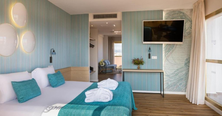 Dotari camere: H Top Amaika ofera camere si suite elegante, cu suprafete cuprinse intre 22 si 50 mp, toate concepute pentru confort maxim si relaxare. Camerele sunt dotate cu aer conditionat, incalzire, Wi-Fi gratuit, televizor cu ecran plat, minibar/frigider, baie cu dus tip ploaie sau cada, uscator de par si articole premium de toaleta. Majoritatea categoriilor superioare dispun de balcon sau terasa, vedere la mare sau piscina, iar suitele includ jacuzzi exterior, paturi balineze si facilitati exclusive.