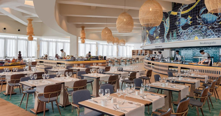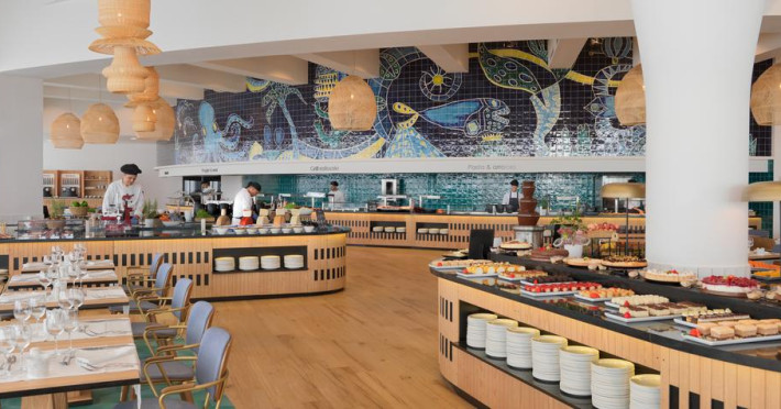 La H10 Atlantic Sunset oaspeții au la dispoziție 5 restaurante unde pot savura mâncăruri delicioase, în stil bufet sau à la carte. Preparate din bucătăria internațională și italiană sunt oferite zilnic la micul dejun, prânz și cină. Masa poate fi servită atât în interior, cît si în aer liber, pe terasă, în funcție de vreme. Oaspeţii pot avea diverse băuturi răcoritoare sau alcoolice la bar. De asemenea , în cadrul proprietății, există cafenea și snack bar ideale pentru o gustare rapidă.