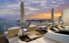 Pe plajă există șezlonguri și umbrele de plajă.