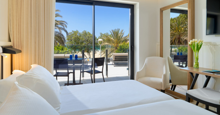 The hotel H10 Casa del Mar is located next to a sandy beach. The nearest restaurants and bars can be reached in a few minutes on foot. The city centre is also just a few steps away. Shops are right on your doorstep, a supermarket is also just a few metres away from the hotel. There is a shuttle between the hotel and the airport (for a fee). In the surrounding a golf course (approx. 3 km) and a disco (next to the building) offer entertainment for holidaymakers. The beach is patrolled by a lifeguard and awarded a blue flag. Here, there are cushions, sun umbrellas and beach towels available. Near the beach there is a promenade where you can go for a stroll. The air-conditioned hotel is equipped with a 24h reception (check-in is possible around the clock), a lobby bar, Wi-Fi, a lift, a jacuzzi, showers and changing rooms, a first aid kit, parking spaces as well as a TV lounge with satellite TV. In the outdoor area of the property you will find a seasonally open, heated pool (open all year), where sun loungers, sun umbrellas and pool towels are available for free. Furthermore, you can relax outdoors on the sun terrace. Inside the hotel you can use an indoor pool. You can store your valuables in the safe, and your luggage in the hotel`s storage room. For very young guests, kid`s chairs, highchairs and cots can be provided. For the smallest children prams can be rented in the hotel. For your clothes there is a laundry and ironing service. For your comfort there is a concierge service. If necessary, you can contact the medical centre at any time. Guests at the accommodation can get a wake-up call from the hotel personnel. For conventions and other business meetings, the hotel offers a business centre as well as a conference area with printer as well as overhead projector. If you want to explore the holiday region, you can use the car and motorbike rental service close to the hotel (extra fee). At the hotel reception, tickets are offered for excursions in the area. In your hotel, a lot of focus is placed on sustainability. This includes among others the hotel`s own recycling bins. The hotel requires that all guests pay a deposit upon arrival. Due to its barrier-free facilities , such as barrier-free entrances, wheelchair accessible rooms and wheelchair-accessible bathrooms, the hotel is also suitable for wheelchair users. Catering As catering services the hotel offers half board and breakfast only. Breakfast is offered continental or from the buffet. Enjoy your lunch à la carte. Dinner is also served as a buffet or à la carte (extras on request). For the meals, there are a buffet restaurant with terrace (gluten-free dishes) and the cafeteria as well as the pool bar. A picnic bench can be used by guests for self-catering. For dinner, guests are asked to wear appropriate clothing in the restaurant. Distances- Airport: approx. 28 km