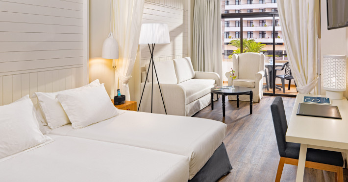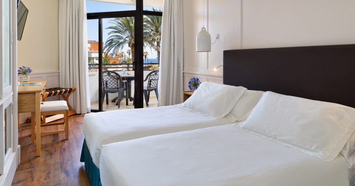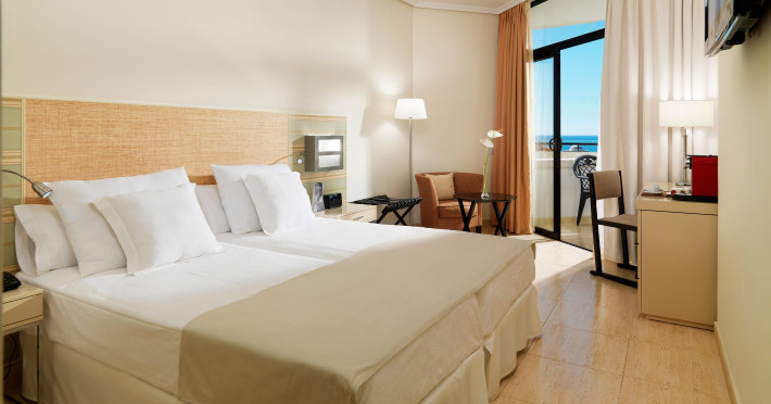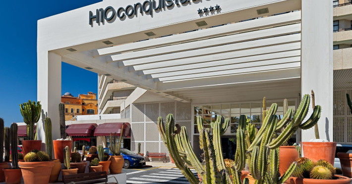 The hotel H10 CONQUISTADOR is located approximately 600 m from a stone beach. The nearest restaurants and bars can be reached in a few minutes on foot. The city centre is around 4 km away. The nearest shops you can reach within around 500 m, a supermarket is just a few metres away from the hotel. The beach is patrolled by a lifeguard. Here, there are beach towels available. Directly next to the beach there is a promenade where you can take leisurely walks. The air-conditioned hotel has a 24h reception (check-in is possible around the clock), a lobby, Wi-Fi, 5 lifts, a boutique, cash machine, a hairdresser, a jacuzzi, a first aid kit, parking spaces as well as a TV lounge with satellite TV. In the outdoor area of the property you will find a garden as well as a heated pool that is open seasonally (open all year), where sun loungers, sun umbrellas and pool towels are available for free. For children there is also a children's pool. Furthermore, outside you can find a sun terrace. Inside the hotel you can use an indoor pool. You can store your valuables in the safe (extra fee), and your luggage in the hotel`s storage roomn. For your entertainment, the hotel offers a library/reading room. For very young guests, kid`s chairs, highchairs and cots can be provided. There is also a laundry service. For your comfort the hotel page will ensure you are looked after. If necessary, you can contact the medical centre at any time. Guests at the accommodation can get a wake-up call from the hotel personnel. For conventions and other business meetings, the hotel offers a conference area with a total of 50 seats, printer as well as overhead projector. If you want to explore the holiday region, you can use the car rental service close to the hotel. In addition, the hotel sells tickets excursions. In your hotel, a lot of focus is placed on sustainability. This includes among others the hotel`s own recycling bins. Due to its barrier-free facilities , such as barrier-free entrances, a wheelchair accessible lift and wheelchair-accessible bathrooms, the hotel is also suitable for wheelchair users (dimensions: lift door width: 79 m, door width room: 78 m). Catering Breakfast is offered from the buffet. Dinner is also served as a buffet. For the meals, there are a buffet restaurant and 2 bars. Distances