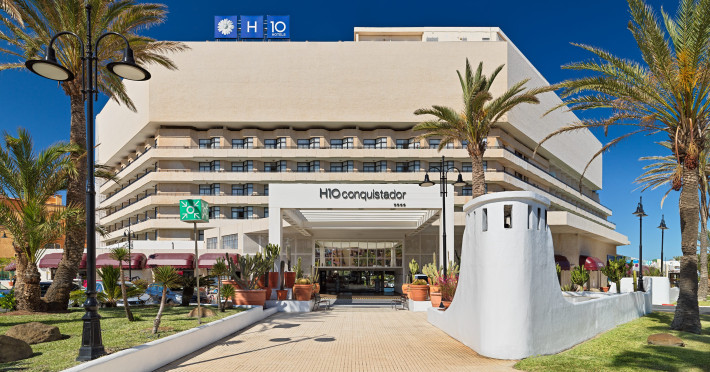 The hotel H10 CONQUISTADOR is located approximately 600 m from a stone beach. The nearest restaurants and bars can be reached in a few minutes on foot. The city centre is around 4 km away. The nearest shops you can reach within around 500 m, a supermarket is just a few metres away from the hotel. The beach is patrolled by a lifeguard. Here, there are beach towels available. Directly next to the beach there is a promenade where you can take leisurely walks. The air-conditioned hotel has a 24h reception (check-in is possible around the clock), a lobby, Wi-Fi, 5 lifts, a boutique, cash machine, a hairdresser, a jacuzzi, a first aid kit, parking spaces as well as a TV lounge with satellite TV. In the outdoor area of the property you will find a garden as well as a heated pool that is open seasonally (open all year), where sun loungers, sun umbrellas and pool towels are available for free. For children there is also a children's pool. Furthermore, outside you can find a sun terrace. Inside the hotel you can use an indoor pool. You can store your valuables in the safe (extra fee), and your luggage in the hotel`s storage roomn. For your entertainment, the hotel offers a library/reading room. For very young guests, kid`s chairs, highchairs and cots can be provided. There is also a laundry service. For your comfort the hotel page will ensure you are looked after. If necessary, you can contact the medical centre at any time. Guests at the accommodation can get a wake-up call from the hotel personnel. For conventions and other business meetings, the hotel offers a conference area with a total of 50 seats, printer as well as overhead projector. If you want to explore the holiday region, you can use the car rental service close to the hotel. In addition, the hotel sells tickets excursions. In your hotel, a lot of focus is placed on sustainability. This includes among others the hotel`s own recycling bins. Due to its barrier-free facilities , such as barrier-free entrances, a wheelchair accessible lift and wheelchair-accessible bathrooms, the hotel is also suitable for wheelchair users (dimensions: lift door width: 79 m, door width room: 78 m). Catering Breakfast is offered from the buffet. Dinner is also served as a buffet. For the meals, there are a buffet restaurant and 2 bars. Distances- Discotheque: approx. 2 km
