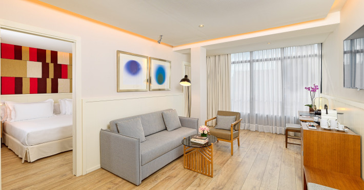 Around 2,2 km from a beach and approximately 2 km from the sea is located the hotel H10 CUBIK. The nearest restaurants and bars can be reached in a few minutes on foot. You can find a range of shops and a supermarket directly on your doorstep. Nearby there is a theatre and a cinema which offer entertainment in high season. The air-conditioned hotel is equipped with a 24h reception (check-in is possible around the clock), a lobby bar, Wi-Fi, an internet corner, 3 lifts, a first aid kit as well as parking spaces (limited and for a fee). In the outdoor area you will find a seasonally heated pool (open all year), where sun loungers and pool towels are available for free. Furthermore, outside you can find a sun terrace on the roof of the building. You can store your valuables in the safe, and your luggage in the hotel`s storage room. In addition, the hotel H10 CUBIK is video-monitored 24h a day. For your entertainment, the hotel offers a library/reading room. For very young guests, kid`s chairs can be provided). There is also a laundry service. Ironing equipment can be rented at the hotel for a fee. For your comfort, in addition to the concierge service the hotel page will ensure you are looked after. If necessary, you can contact the medical centre at any time. The energy supply is 220 Volts. For conventions and other business meetings, the hotel offers a business centre as well as a conference area with a total of 200 seats, a reception, tables, a video projector, printer, fax, scanner, overhead projector as well as a catering service. In addition, the hotel sells tickets excursions. Smoking is permitted in the hotel. For guests on their honeymoon, the hotel has special offers such as special honeymoon packages. In your hotel, a lot of focus is placed on sustainability. This includes the hotel`s own recycling bins, a central room air-conditioning, environmentally-friendly cleaning and the use of a closed-water circuit. That is why the hotel H10 CUBIK was also awarded a sustainability certificate. American Express, Diners Club, Euro/Master Card and JCB are accepted as means of payment. Due to its barrier-free facilities , such as a sliding door in the entrance area, an automatic hotel door, separate, barrier-free entrances, wheelchair accessible rooms, a wheelchair accessible lift, a handrail in the elevator and wheelchair-accessible bathrooms, the hotel is also suitable for wheelchair users. Catering Breakfast is offered from the buffet or à la carte (extras on request). Lunch and dinner are also served à la carte (extras on request and at extra cost). For the meals, there are a restaurant with terrace (Mediterranean, calorie-reduced, gluten-free and vegetarian dishes) and 2 bars, the cafeteria as well as the pool bar. Appropriate clothing is required for lunch and dinner. Distances- Discotheque: approx. 500 m