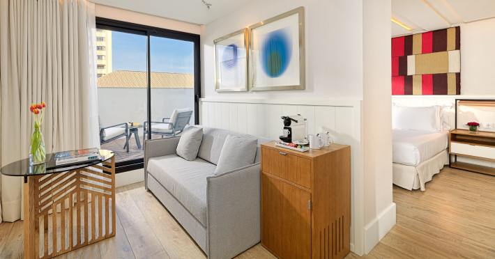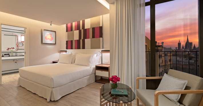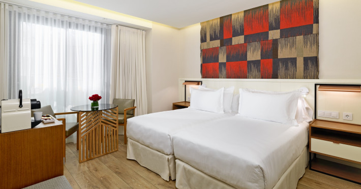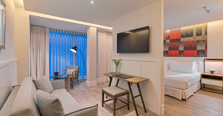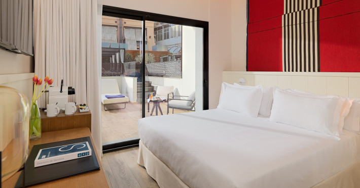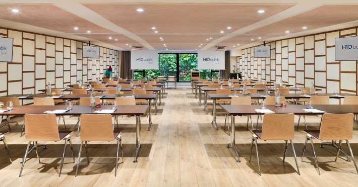 Around 2,2 km from a beach and approximately 2 km from the sea is located the hotel H10 CUBIK. The nearest restaurants and bars can be reached in a few minutes on foot. You can find a range of shops and a supermarket directly on your doorstep. Nearby there is a theatre and a cinema which offer entertainment in high season. The air-conditioned hotel is equipped with a 24h reception (check-in is possible around the clock), a lobby bar, Wi-Fi, an internet corner, 3 lifts, a first aid kit as well as parking spaces (limited and for a fee). In the outdoor area you will find a seasonally heated pool (open all year), where sun loungers and pool towels are available for free. Furthermore, outside you can find a sun terrace on the roof of the building. You can store your valuables in the safe, and your luggage in the hotel`s storage room. In addition, the hotel H10 CUBIK is video-monitored 24h a day. For your entertainment, the hotel offers a library/reading room. For very young guests, kid`s chairs can be provided). There is also a laundry service. Ironing equipment can be rented at the hotel for a fee. For your comfort, in addition to the concierge service the hotel page will ensure you are looked after. If necessary, you can contact the medical centre at any time. The energy supply is 220 Volts. For conventions and other business meetings, the hotel offers a business centre as well as a conference area with a total of 200 seats, a reception, tables, a video projector, printer, fax, scanner, overhead projector as well as a catering service. In addition, the hotel sells tickets excursions. Smoking is permitted in the hotel. For guests on their honeymoon, the hotel has special offers such as special honeymoon packages. In your hotel, a lot of focus is placed on sustainability. This includes the hotel`s own recycling bins, a central room air-conditioning, environmentally-friendly cleaning and the use of a closed-water circuit. That is why the hotel H10 CUBIK was also awarded a sustainability certificate. American Express, Diners Club, Euro/Master Card and JCB are accepted as means of payment. Due to its barrier-free facilities , such as a sliding door in the entrance area, an automatic hotel door, separate, barrier-free entrances, wheelchair accessible rooms, a wheelchair accessible lift, a handrail in the elevator and wheelchair-accessible bathrooms, the hotel is also suitable for wheelchair users. Catering Breakfast is offered from the buffet or à la carte (extras on request). Lunch and dinner are also served à la carte (extras on request and at extra cost). For the meals, there are a restaurant with terrace (Mediterranean, calorie-reduced, gluten-free and vegetarian dishes) and 2 bars, the cafeteria as well as the pool bar. Appropriate clothing is required for lunch and dinner. Distances