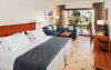The hotel H10 PLAYA MELONERAS PALACE is located approximately 50 m from a sandy/stone beach and about 100 m from the sea. The nearest bars and restaurants are located directly next to the building. The city centre is around 1,4 km away. A supermarket and other shops you reach after around 1,5 km. There is a shuttle between the hotel and the airport (for a fee). The beach is patrolled by a lifeguard and awarded a blue flag. Here, there are beach towels available. Near the beach there is a promenade where you can go for a stroll. To reach the beach a shuttle is provided. The air-conditioned hotel is equipped with a 24h reception (check-in is possible around the clock), a lobby bar, Wi-Fi, 7 lifts, a shop, a boutique, a hairdresser, a jacuzzi, showers and changing rooms, a first aid kit, parking spaces as well as a TV lounge with satellite TV. In the outdoor area of the property you will find a garden as well as a heated pool that is open seasonally (open all year), where sun loungers, sun umbrellas and pool towels are available for free. For children there is also a children's pool. Furthermore, outside you can find a sun terrace. You can store your valuables in the safe, and your luggage in the hotel`s storage room. For your entertainment, the hotel offers a disco. For very young guests, kid`s chairs can be provided. There is also a laundry service available at an additional cost to customers as well as an ironing service. For your comfort the hotel page will ensure you are looked after. If necessary, you can contact the medical centre at any time. Guests at the accommodation can get a wake-up call from the hotel personnel. For conventions and other business meetings, the hotel offers a business centre as well as EXTRA_FEE conference rooms with a total of 261 seats, printer as well as overhead projector. If you want to explore the holiday region, you can use the car and motorbike rental service close to the hotel (extra fee). At the hotel reception, tickets are offered for excursions in the area. For guests on their honeymoon, the hotel has special offers such as special honeymoon packages. In your hotel, a lot of focus is placed on sustainability. This includes among others the hotel`s own recycling bins. The hotel requires that all guests pay a deposit upon arrival. Due to its barrier-free facilities , such as barrier-free entrances, wheelchair accessible rooms and wheelchair-accessible bathrooms, the hotel is also suitable for wheelchair users. Catering As catering services the hotel offers all-inclusive, half board and breakfast only. Breakfast is offered from the buffet or à la carte. Lunch and dinner are also served à la carte or from the buffet. For the meals, there are a buffet restaurant with terrace (Mediterranean, calorie-reduced, gluten-free and vegetarian dishes) and several bars as well as the pool bar. For dinner, guests are asked to wear appropriate clothing in the restaurant. Distances