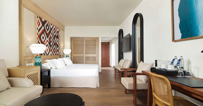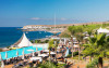 The hotel H10 PLAYA MELONERAS PALACE is located approximately 50 m from a sandy/stone beach and about 100 m from the sea. The nearest bars and restaurants are located directly next to the building. The city centre is around 1,4 km away. A supermarket and other shops you reach after around 1,5 km. There is a shuttle between the hotel and the airport (for a fee). The beach is patrolled by a lifeguard and awarded a blue flag. Here, there are beach towels available. Near the beach there is a promenade where you can go for a stroll. To reach the beach a shuttle is provided. The air-conditioned hotel is equipped with a 24h reception (check-in is possible around the clock), a lobby bar, Wi-Fi, 7 lifts, a shop, a boutique, a hairdresser, a jacuzzi, showers and changing rooms, a first aid kit, parking spaces as well as a TV lounge with satellite TV. In the outdoor area of the property you will find a garden as well as a heated pool that is open seasonally (open all year), where sun loungers, sun umbrellas and pool towels are available for free. For children there is also a children's pool. Furthermore, outside you can find a sun terrace. You can store your valuables in the safe, and your luggage in the hotel`s storage room. For your entertainment, the hotel offers a disco. For very young guests, kid`s chairs can be provided. There is also a laundry service available at an additional cost to customers as well as an ironing service. For your comfort the hotel page will ensure you are looked after. If necessary, you can contact the medical centre at any time. Guests at the accommodation can get a wake-up call from the hotel personnel. For conventions and other business meetings, the hotel offers a business centre as well as EXTRA_FEE conference rooms with a total of 261 seats, printer as well as overhead projector. If you want to explore the holiday region, you can use the car and motorbike rental service close to the hotel (extra fee). At the hotel reception, tickets are offered for excursions in the area. For guests on their honeymoon, the hotel has special offers such as special honeymoon packages. In your hotel, a lot of focus is placed on sustainability. This includes among others the hotel`s own recycling bins. The hotel requires that all guests pay a deposit upon arrival. Due to its barrier-free facilities , such as barrier-free entrances, wheelchair accessible rooms and wheelchair-accessible bathrooms, the hotel is also suitable for wheelchair users. Catering As catering services the hotel offers all-inclusive, half board and breakfast only. Breakfast is offered from the buffet or à la carte. Lunch and dinner are also served à la carte or from the buffet. For the meals, there are a buffet restaurant with terrace (Mediterranean, calorie-reduced, gluten-free and vegetarian dishes) and several bars as well as the pool bar. For dinner, guests are asked to wear appropriate clothing in the restaurant. Distances- Discotheque: approximately at 5,8 km