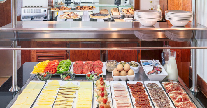 The hotel H10 RACÓ DEL PI is located approximately 600 m from a beach. The nearest shops you can reach within around 250 m, a supermarket is around 300 m away. Nearby there is a disco and a theatre which offer entertainment in high season. The air-conditioned, GPS-verified hotel is equipped with a 24h reception (check-in is possible around the clock), a lobby, Wi-Fi, internet access, a lift, a first aid kit as well as a TV lounge with satellite TV. You can store your valuables in the safe, and your luggage in the hotel`s storage room. In addition, the hotel H10 RACÓ DEL PI is video-monitored 24h a day. For very young guests, kid`s chairs, highchairs and cots can be provided. There is also an ironing service. For your comfort there is a concierge service. The energy supply is 220 Volts. For conventions and other business meetings, the hotel offers a business centre with a reception, printer as well as scanner. In addition, the hotel sells tickets for excursions. In your hotel, a lot of focus is placed on sustainability. This includes among others the provision of soap, shampoo and lotion dispensers. That is why the hotel H10 RACÓ DEL PI was also awarded a sustainability certificate. Euro/Master Card and Visa are accepted as means of payment. Due to its barrier-free facilities , such as a sliding door in the entrance area, a hotel door that can be opened manually, barrier-free entrances, wheelchair accessible rooms, a wheelchair accessible lift and wheelchair-accessible bathrooms, the hotel is also suitable for wheelchair users. Catering As catering services the hotel offers breakfast only. Breakfast is offered continental, from the buffet or à la carte (extras on request). Your physical well-being is catered for by a buffet restaurant (gluten-free dishes). Distances