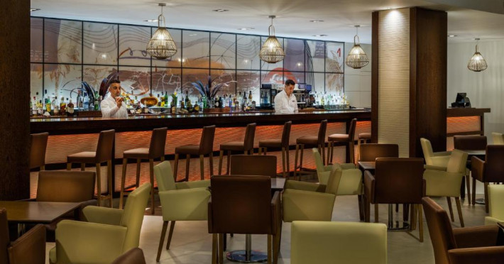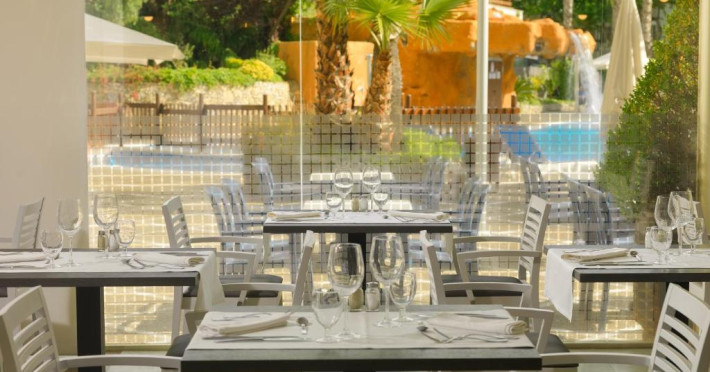 Restaurantul El Tarraco oferă o selecție de preparate tip bufet și mancăruri mediteraneene și oferă, de asemenea, bucătărie deschisă. Oaspeții se pot bucura de o băutură langă piscină, in barul cu pian sau in taverna Sport Legends.