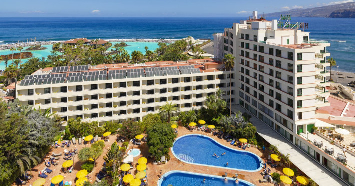 Around 50 m from a sandy/stone beach is located the hotel Hotel H10 Tenerife Playa. The old town is around 400 m away. You can find a range of shops and a supermarket directly on your doorstep. In the surrounding a leisure park (approx. 1 km), an aqua park (approx. 90 km), a theatre (approx. 6 km), a cinema (approx. 6 km) and a golf course (approx. 3 km) offer entertainment during the best time of the year. The beach is patrolled by a lifeguard and awarded a blue flag. The air-conditioned hotel is equipped with a 24h reception (check-in is possible around the clock), a lobby bar, Wi-Fi, a lift, cash machine, a hairdresser, showers and changing rooms, a first aid kit, parking spaces as well as a TV lounge with satellite TV. In the outdoor area of the property you will find a garden as well as a seasonally open, heated pool, where sun loungers, sun umbrellas and pool towels are available for free. There is also a children's pool. Furthermore, outside you can find a sun terrace. You can store your valuables in the safe (extra fee), and your luggage in the hotel`s storage roomn. For very young guests, kid`s chairs can be provided). To clean your clothes there is a laundry service. For your comfort, in addition to the concierge service the hotel page will ensure you are looked after. If necessary, you can contact the medical centre (for a fee). Guests at the accommodation can get a wake-up call from the hotel personnel. For conventions and other business meetings, the hotel offers a conference area (extra fee) with a total of 168 seats as well as overhead projector. If you want to explore the holiday region, you can use the car and motorbike rental service close to the hotel. At the hotel reception, tickets are offered for excursions in the area. In your hotel, a lot of focus is placed on sustainability. This includes among others the hotel`s own recycling bins. Due to its barrier-free facilities , such as barrier-free entrances, the hotel is also suitable for wheelchair users. Catering As catering services the hotel offers all-inclusive, half board, full board and breakfast only. Breakfast is offered continental or from the buffet (extras on request). Enjoy your lunch from the buffet or as a set meal (extras on request). Dinner is also served as a buffet (extras on request). For the meals, there are a buffet restaurant with terrace (calorie-reduced and vegetarian dishes) and the cafeteria as well as the pool bar. The drinks menu of the hotel includes international alcoholic beverages. For dinner, guests are asked to wear appropriate clothing in the restaurant. Distances