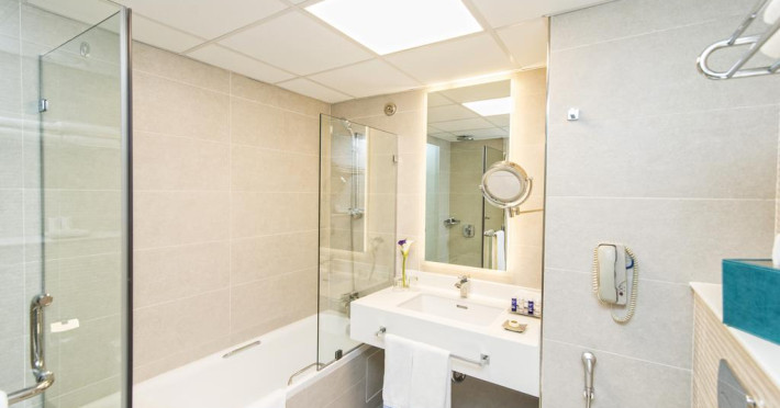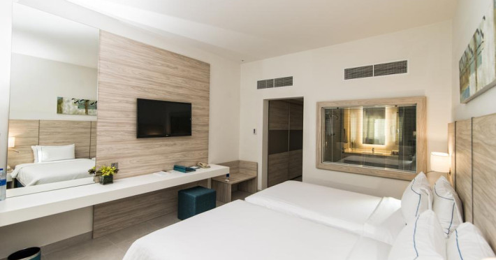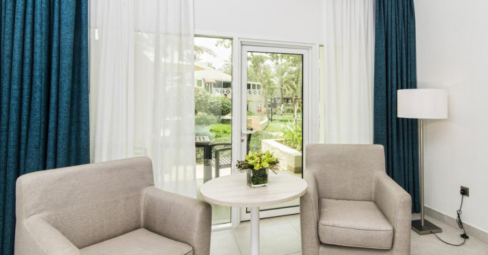 Fiecare cameră dispune de minibar. Oaspeții pot solicita serviciul de room service pentru a servi masa sau diverse băuturi. Camerele luminoase de la Habtoor Grand Resort, Autograph Collection sunt dotate cu mochetă, aer condiționat, Tv cu canale prin satelit și seif. Unele camere au vedere la grădină. În camere există baie cu cadă sau duș ce are în dotare foehn și articole de toaletă gratuite. Oaspeții au acces gratuit la serviciul Wi-fi în camere. Curățenia in cameră se face zilnic. Toate camerele spațioase de la Habtoor Grand Resort, Autograph Collection au zonă de relaxare cu canapea, ceea ce oferă un plus de confort. Proprietatea oferă camere pentru familie cu o suprafață mai mare și un număr mai mare de paturi față de cele standard. Se pot rezerva de asemenea camere pentru nefumători.