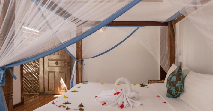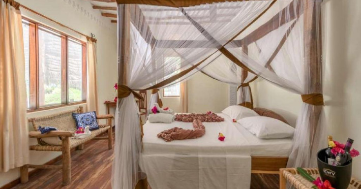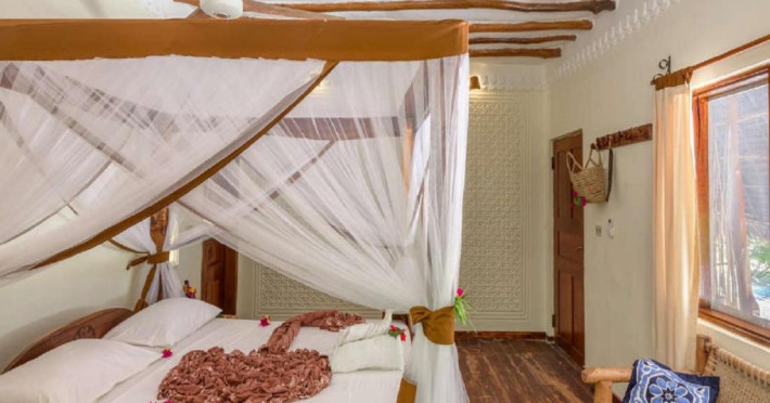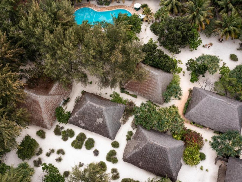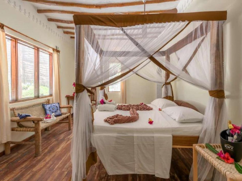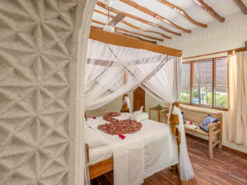 Bungalourile cu design individual și camerele cu vedere la mare au acoperiș din stuf și podea din lemn, cu tencuială ornamentală vidaka tipică pentru coasta Swahili, cu decor shamba elegant, in stil autentic.