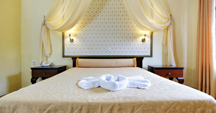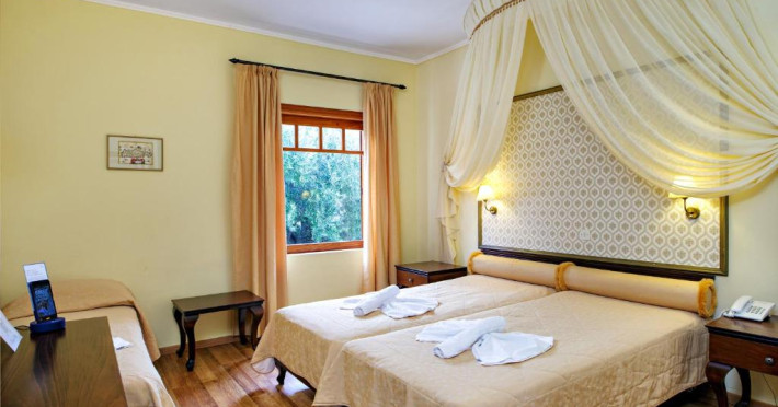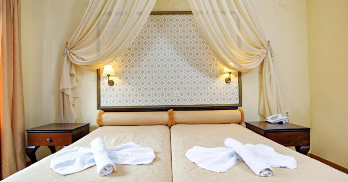 Sunt disponibile 49 camere. În camere există baie cu cadă sau duș ce are în dotare foehn și articole de toaletă gratuite. Unele camere au balcon cu vedere la mare sau la piscină. Fiecare cameră dispune de minibar. Oaspeții pot solicita serviciul de room service pentru a servi masa sau diverse băuturi. Camerele luminoase de la Halepa sunt dotate cu parchet, aer condiționat, Tv cu canale prin satelit și seif. Oaspeții au acces gratuit la serviciul Wi-fi în camere. Curățenia in cameră se face zilnic. Proprietatea oferă camere pentru familie cu o suprafață mai mare și un număr mai mare de paturi față de cele standard. Se pot rezerva de asemenea camere pentru nefumători.