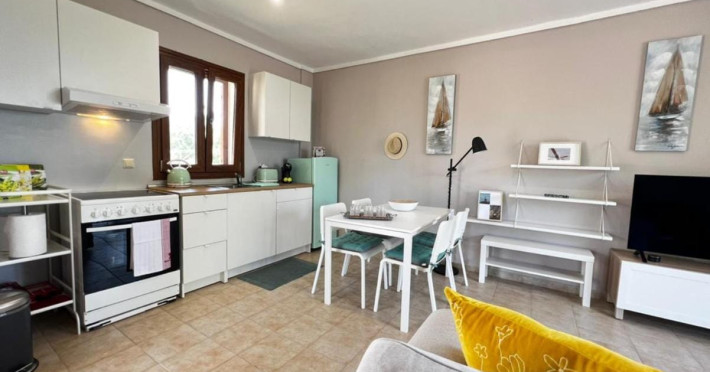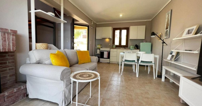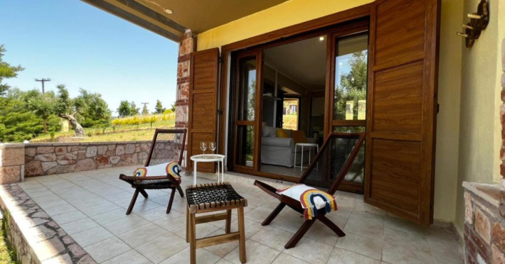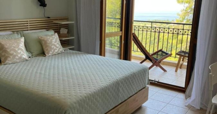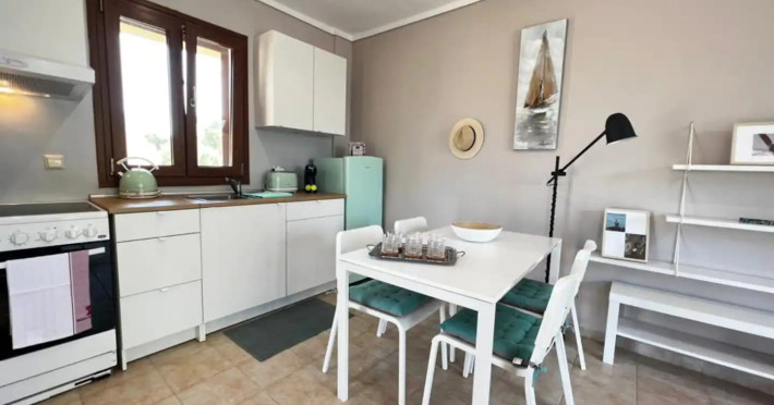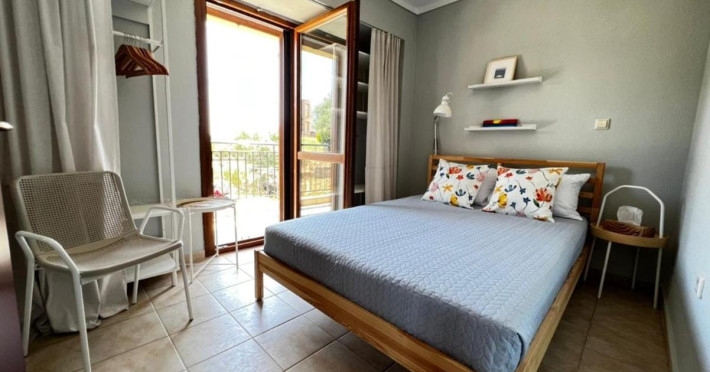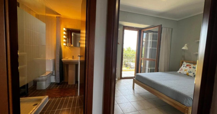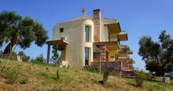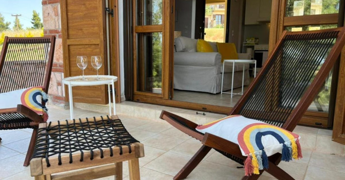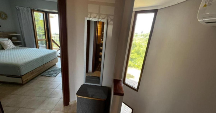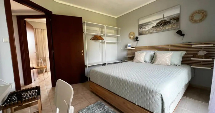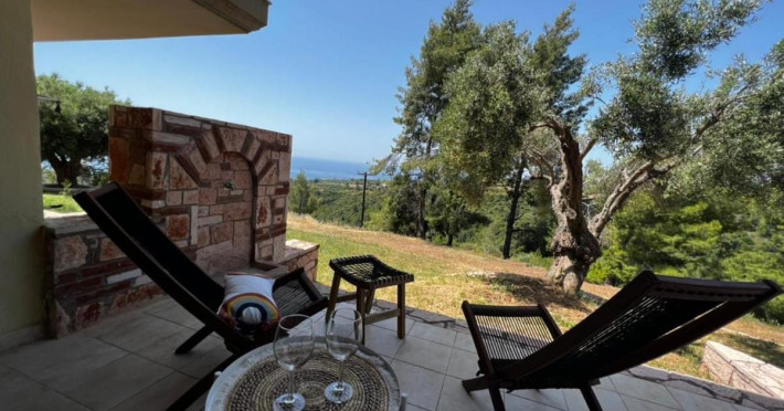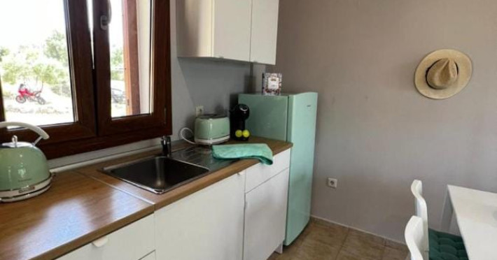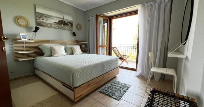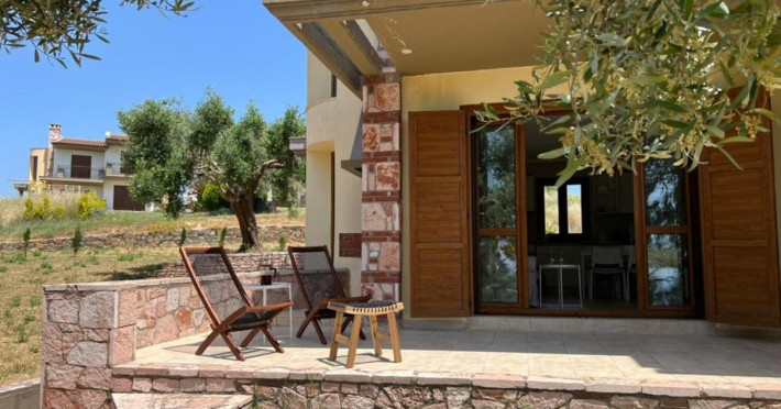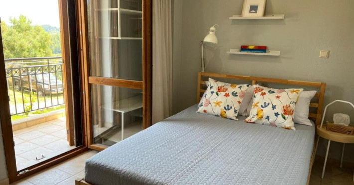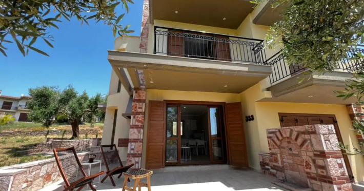 Halkidiki Kassandra Villa 3P in Greece is located in a quiet and peaceful place , with stunning sunrise and sunset views. Only 15 minutes walk through the forest area to the sea. There is no mass tourism on the beach and only residents of the surrounding houses enjoy this privilege to sunbathe and swim alone with nature. In the spring of 2022 it will be completely renovated and welcome its first guests. The villa is suitable for people who value coziness, comfort, quality of living and enjoy the silence and beauty of nature. Accommodation for 3 bedrooms with double bed, 2 bathrooms with shower, living room, equipped kitchen, garden, terraces, 2 parking places at the house. Complete semi-detached house is offered for you vacation. Additional options for special occasions or those who want to pamper themselves or loved ones. For connoisseurs of special quality we offer a Premium Package for 2 people, including top quality bed linen (satin cotton), top quality towels, sparkling wine, soft drinks, mineral water, fruit basket, a bouquet of flowers that decorate your arrival and stay in the villa. The cost of lodging and premium package can be cleared with us. Please note that bed linens are only provided for 3 double beds, there are no bed linens for single beds. It is recommended to have a car to visit interesting parts of the peninsula, shopping centers, restaurants and bars, nightclubs and numerous sandy beaches of unique beauty. Contact the owner of the house to help you rent a rental car at the best price. Also, the pool complex Spa Loutra with thermal water, just a kilometer from the villa, open from April to December, you should definitely include this in your visit program. The beach Ani is just 800 meters from the house (18 minutes on foot). Please note that check-in between 8pm and 11pm is available for an extra cost, check-in after 11pm is not possible. Please respect the neighborhood silence hours between 11pm and 7 am. - Airport shuttle Payment 75,00 € per person per rideView: City view, Sea view, Garden view, Landmark view, Mountain view Pets allowed: no Smoking allowed: no Others: Calm, Private entrance