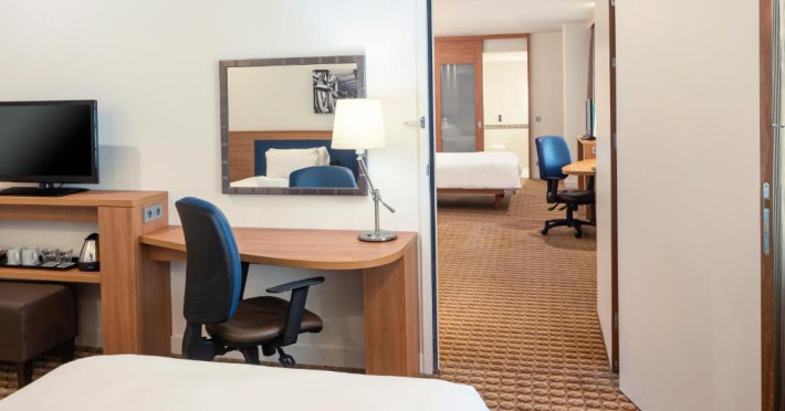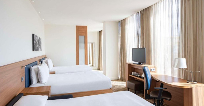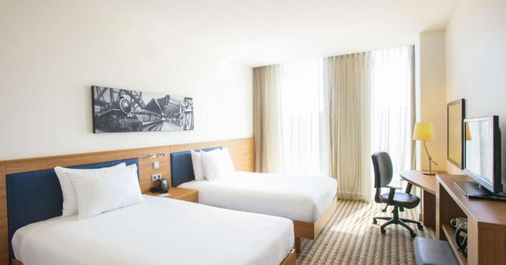 Fiecare cameră de la Hampton by Hilton are o zonă de lucru ergonomică, facilități de călcat și facilități pentru prepararea de ceai/cafea. Baia privată este prevăzută cu o cabină de duș. Hotelul găzduiește un centru de fitness gratuit, dotat cu cele mai noi echipamente de exerciții, precum și un centru de afaceri gratuit.