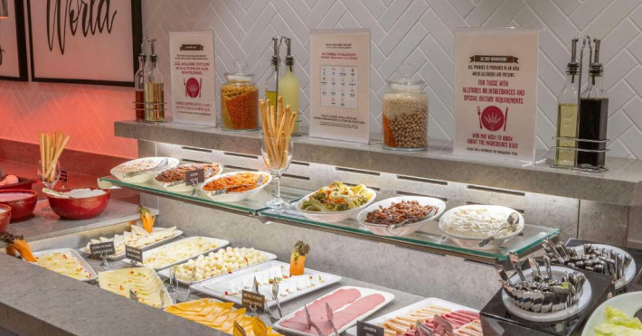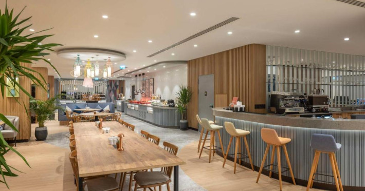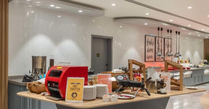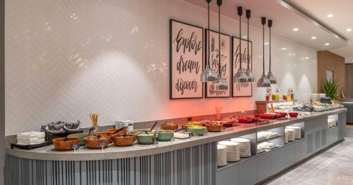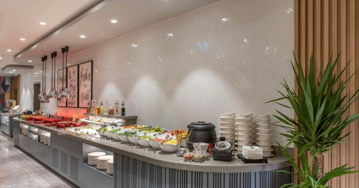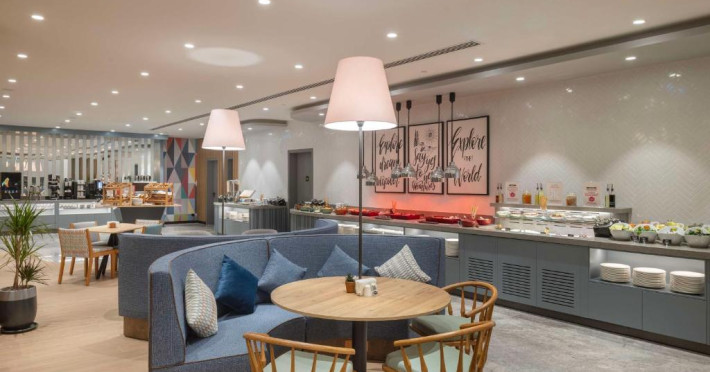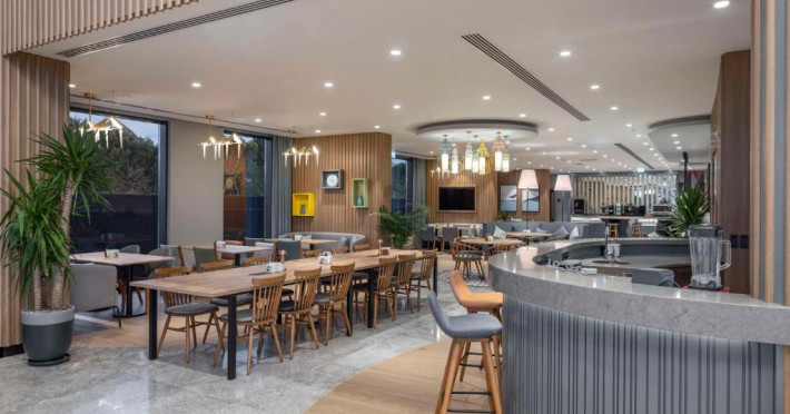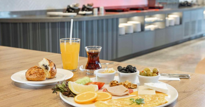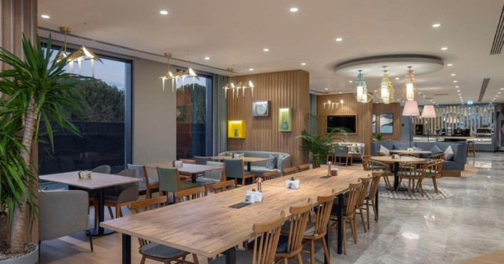 Oaspeții pot savura in fiecare dimineață un mic dejun tip bufet, continental sau american. Hampton by Hilton Antalya Airport are un restaurant care servește mancăruri din bucătăria internațională. La cerere, sunt disponibile și preparate vegetariene, fără lactate și halal.