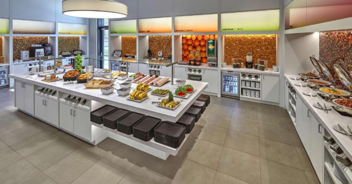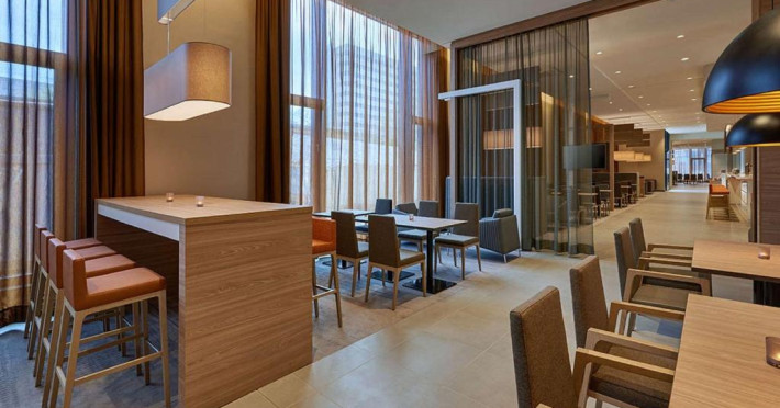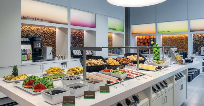 Un mic dejun cald este oferit in fiecare dimineață la Hampton By Hilton Berlin City Centre. Acesta constă din ouă, fasole coptă, vafe, fructe și multe alte opțiuni. In zona inconjurătoare se găsesc numeroase cafenele și restaurante.