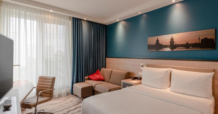 Hampton By Hilton Berlin City Center Alexanderplatz oferă camere in stil contemporan, cu un pat de calitate superioară de marcă proprie și un TV cu ecran plat de 55 inch. Fiecare cameră are, de asemenea, un birou mare, facilități pentru prepararea de ceai/cafea și o baie privată.
