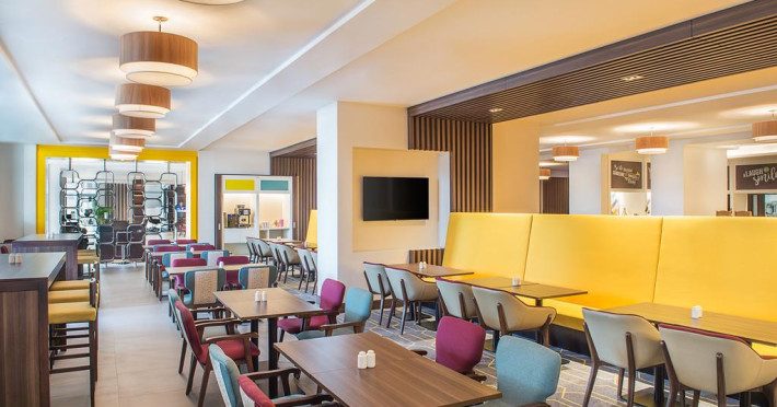 La Hampton By Hilton Dubai Airport oaspeții au la dispoziție 3 restaurante unde pot savura mâncăruri delicioase, în stil bufet sau à la carte. Preparate din bucătăria internațională așteaptă să fie degustate în fiecare zi la micul dejun, prânz și cină. Masa poate fi servită atât în interior, cît si în aer liber, pe terasă, în funcție de vreme. Oaspeţii pot avea diverse băuturi răcoritoare sau alcoolice la bar. În cadrul proprietății există și o cafenea ideală pentru o gustare rapidă. Pentru cei cu anumite nevoi de nutriție, Hampton By Hilton Dubai Airport oferă meniuri pentru diete speciale.