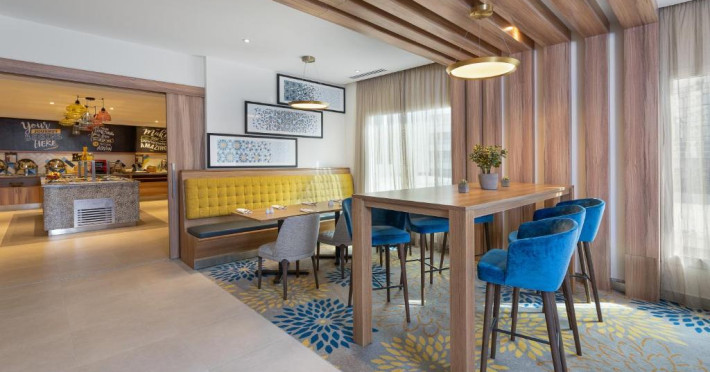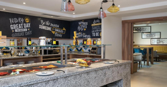 La Hampton By Hilton Dubai Al Barsha oaspeții au la dispoziție un restaurant care servește mâncare în stil bufet și à la carte. Preparate din bucătăria internațională așteaptă să fie degustate în fiecare zi. Masa poate fi servită atât în interior, cît si în aer liber, pe terasă, în funcție de vreme. Oaspeţii pot avea diverse băuturi răcoritoare sau alcoolice la bar.