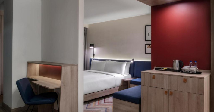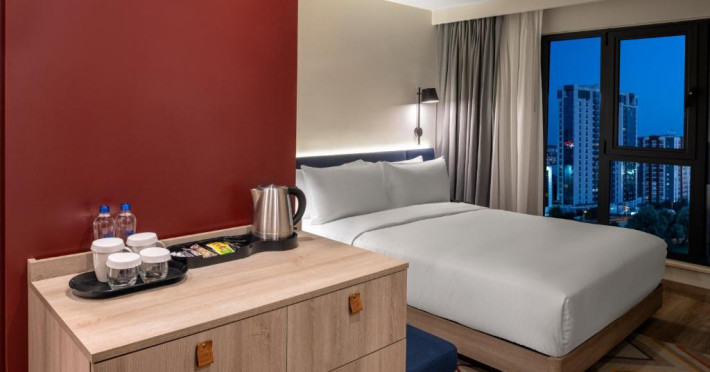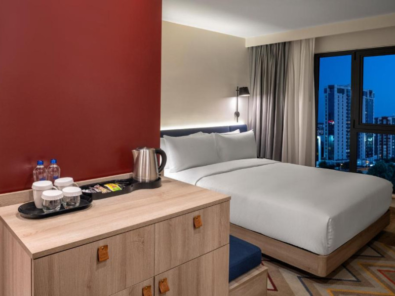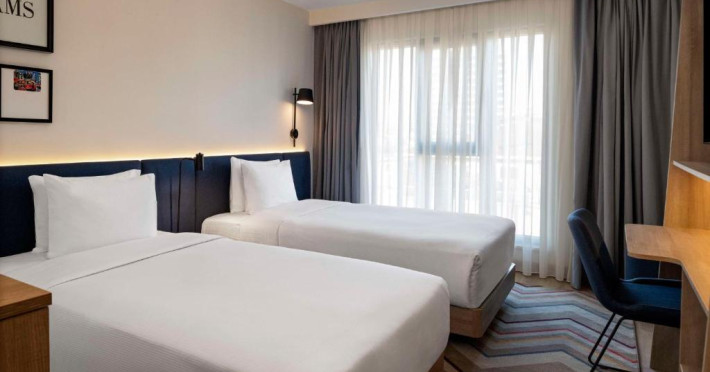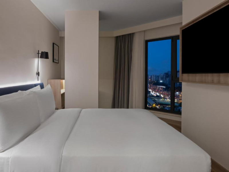 Cazare confortabilă: Hampton By Hilton Istanbul Merter din Istanbul oferă camere de familie cu aer condiționat, WiFi gratuit și facilități moderne. Fiecare cameră include birou, frigider și televizor.