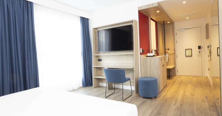 Only one kilometer from the city center, weâre located off highway A-45. The Catedral de la Encarnación de Málaga is three km away, and the Marina and beaches are four km from our hotel. Costa del Sol International Airport AGP is 12 km away. During your stay, we offer complimentary breakfast. Enjoy our onsite restaurant and event rooms..The hotel is located between the Paseo de Martiricos and the Guadalmedina River. Strategically located near to the city Center 1 km, 3 km to the Marina, 12 km to the International Airport AGP, 3 km to the main Train Station MarÃa Zambrano, 6 km to the Málaga Congress Palace, 13 km to the Technological Park. Direct access to the main highway A-45 that connect Málaga with the most important capitals of province like Cordoba, Sevilla, Granada or Cádiz. Well communicated with the Sun Coast and the most important cities like Torremolinos, Benalmádena or Marbella..Accessible rooms: 8 Nonsmoking rooms: 209 Floors: 9 Total rooms: 209 Buildings: 1.AcceptedPaymentForms: AmericanExpress, ChinaUnionPay, DinersClub, DiscoverCard, JapanCreditBureau, Mastercard, Optima, TravelersChecks, VISA, WiredPayment. Hampton Restaurant International cuisine: Salads, pizza, pasta, meat, fish and a selection of non-alcoholic drinks.Datorita dinamicitatii domeniului disponibilitatea ofertelor se modifica de la un moment la altul. De aceea ofertele sunt valabile in limita locurilor disponibile. Agentia nu este responsabila pentru eventualele neconcordante care pot aparea intre informatiile privind tarifele si alte detalii din site si informatiile primite in agentie. In aceste cazuri vor avea prioritate, intotdeauna, informatiile primite in agentie.