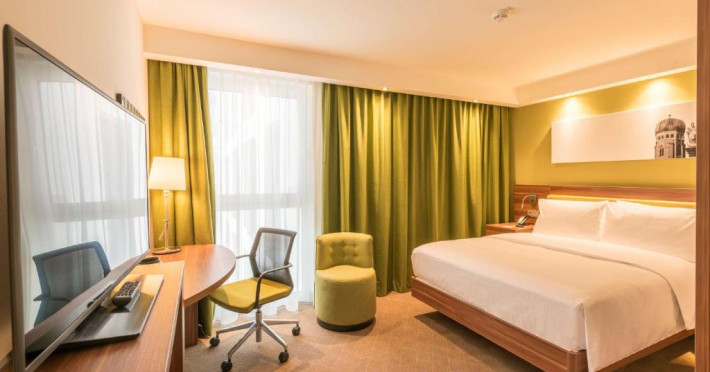 Hampton By Hilton Munich City West se găsește in München, la 2,9 km de Gara Centrală München, și oferă un centru de fitness, un lounge comun, un bar și parcare privată. Printre facilități disponibile la această proprietate se numără sau recepție deschisă nonstop și un centru de afaceri, precum și WiFi gratuit in proprietate. Acest hotel se află la 3,4 km de Konigsplatz și la 3,9 km de Catedrala din München (Frauenkirche).