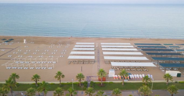 Plaja: Plaja publica cu nisip, bar pe plaja
