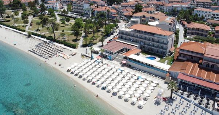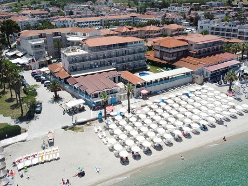Complexul hotelier este construit in fata uneia dintre cele mai frumoase plaje din Hanioti. Acest hotel se află la o distanță scurtă de centrul comercial aglomerat al statiunii, care este unul dintre satele cele mai moderne și cosmopolite din Halkidiki, cu tot felul de magazine și posibilitati de divertisment, capabile sa satisfaca toate gusturile, fiecare vârstă și fiecare buget.Full description