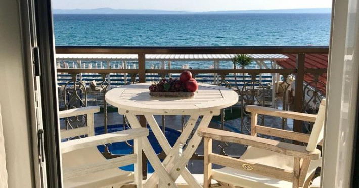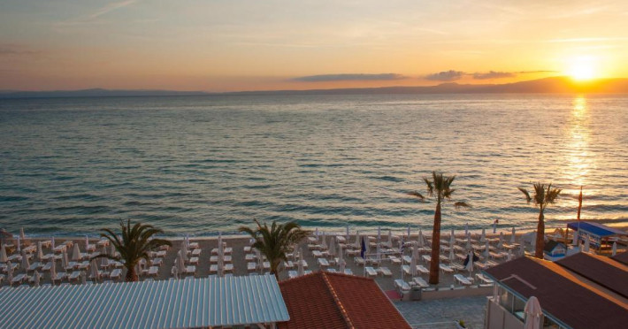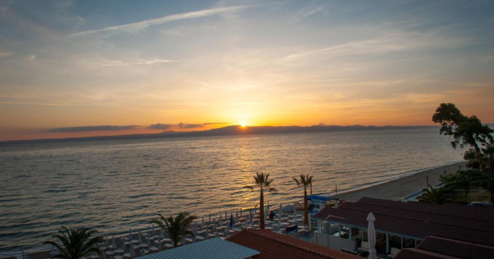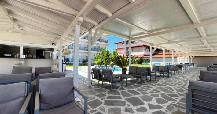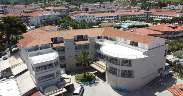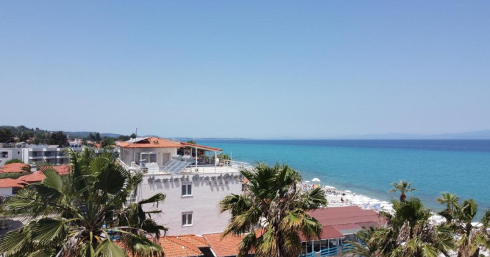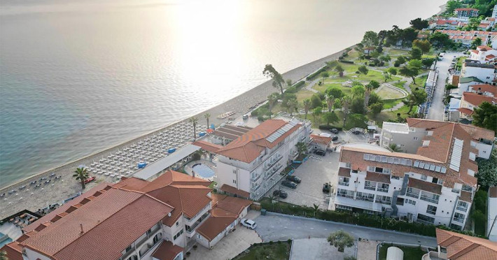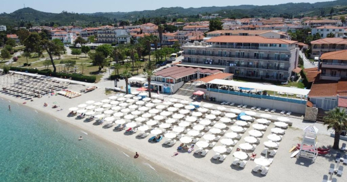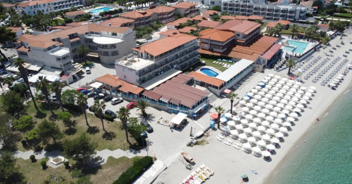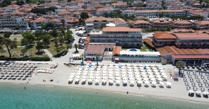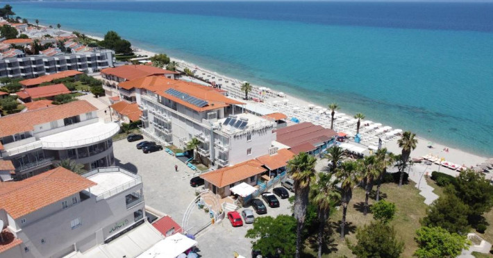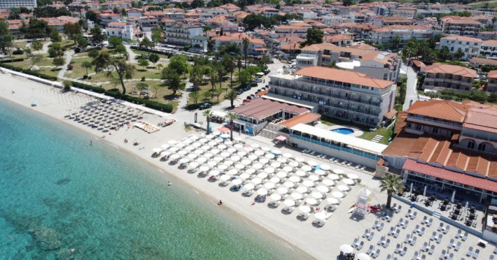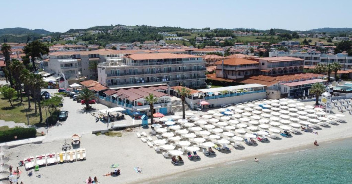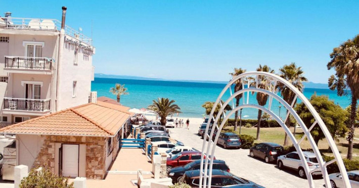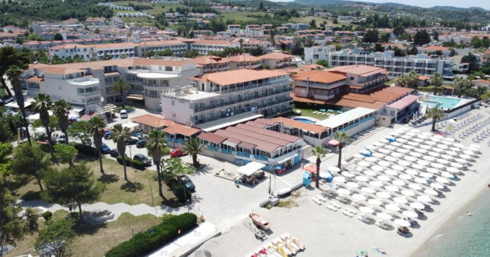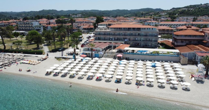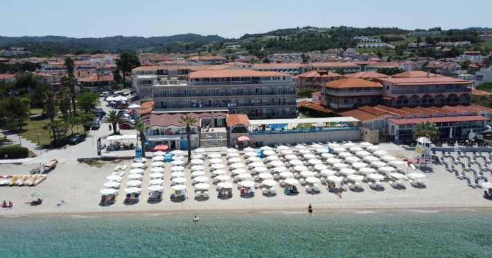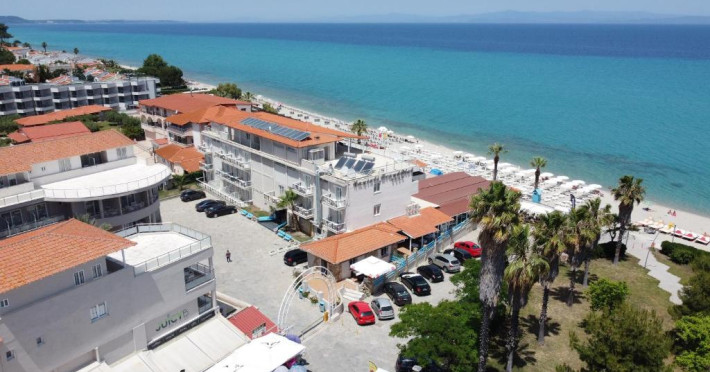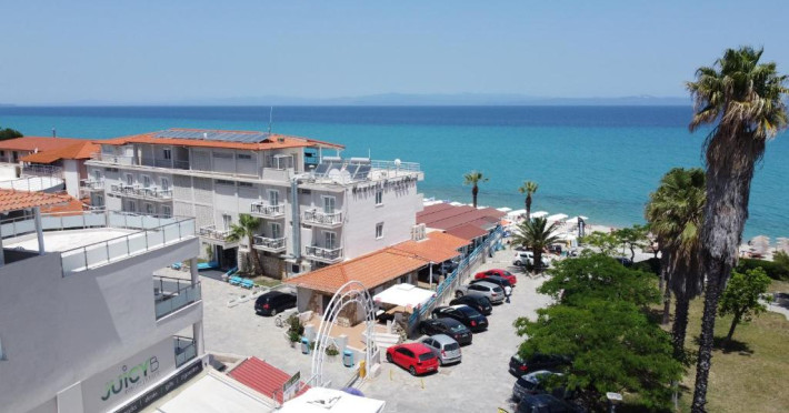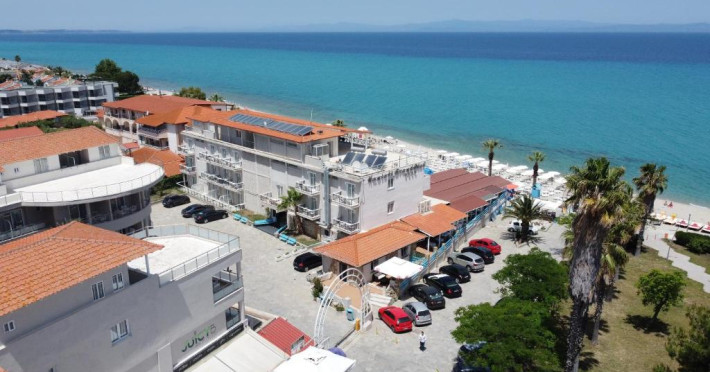 Centrul Hanioti, cunoscut pentru plajele sale cu nisip și centrul comercial aglomerat, se află la 5 minute de mers pe jos. Aeroportul din Salonic este la 100 km, iar serviciul de inchiriere auto este oferit prin recepție. Sunt disponibile locuri de parcare limitate.