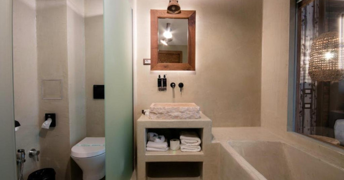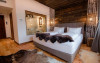 Camera dubla Deluxe cu cada si balcon privat, cu o suprafata de aproximativ 45 mp, pentru 2 oaspeti, cu pat matrimonial king size (160x200 cm) si baie cu dus, ofera Wi-Fi gratuit, aer conditionat, TV, mini-bar, espressor Nespresso, seif, room service.