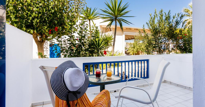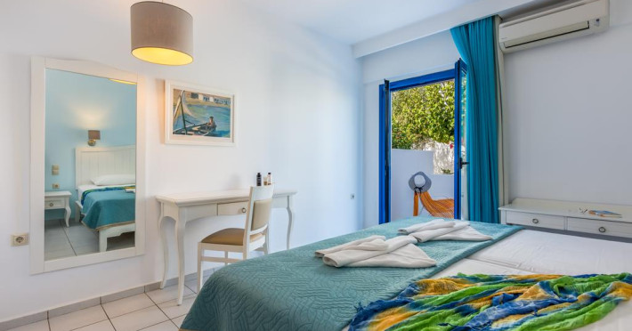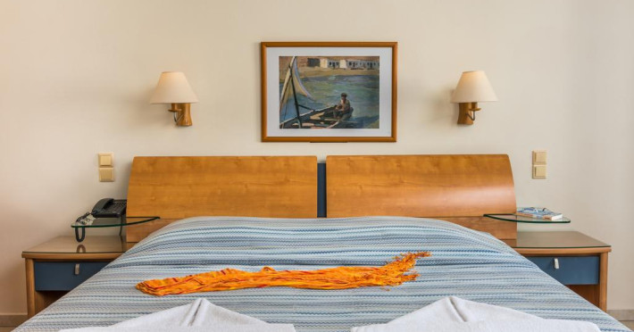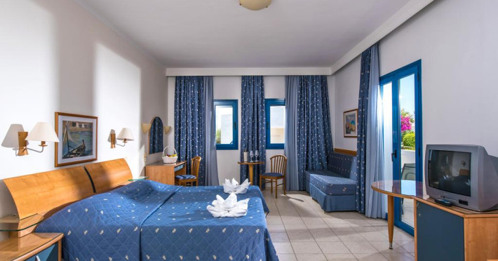 Sunt disponibile 57 camere. În camere există baie cu cadă sau duș ce are în dotare foehn și articole de toaletă gratuite. Oaspeții au la dispoziție serviciul de room service pentru a servi masa sau diverse băuturi. Unele camere au balcon cu vedere la grădină sau la piscină. Camerele confortabile de la Hara Ilios au pardoseală de gresie/ marmură, aer condiționat, Tv cu canale prin satelit și seif. Oaspeții au acces gratuit la serviciul Wi-fi în camere. Curățenia in cameră se poate asigura zilnic, contra cost. Toate camerele spațioase de la Hara Ilios au zonă de relaxare. Fiecare unitate de cazare are frigider. Proprietatea oferă camere pentru familie cu o suprafață mai mare și un număr mai mare de paturi față de cele standard.