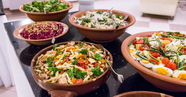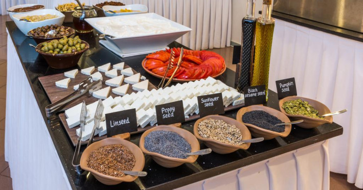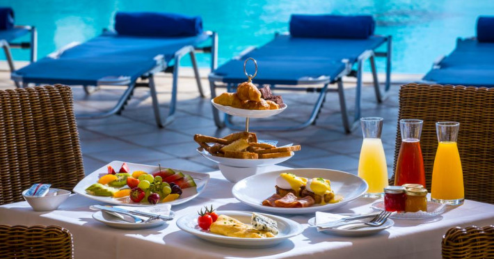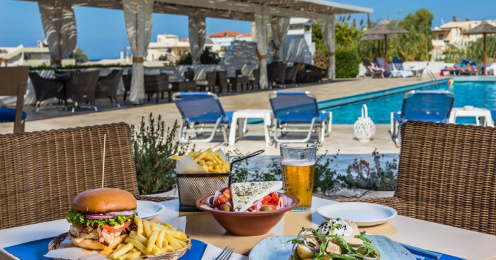 La Hara Ilios oaspeții au la dispoziție 2 restaurante unde pot savura mâncăruri delicioase, în stil bufet sau à la carte. Preparate din bucătăria locală și mediteraneană așteaptă să fie degustate în fiecare zi la micul dejun, prânz și cină. Masa poate fi servită atât în interior, cît si în aer liber, pe terasă, în funcție de vreme. Oaspeţii pot avea diverse băuturi răcoritoare sau alcoolice la bar. Pentru cei cu anumite nevoi de nutriție, Hara Ilios oferă meniuri pentru diete speciale.