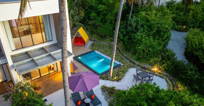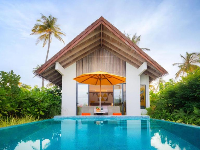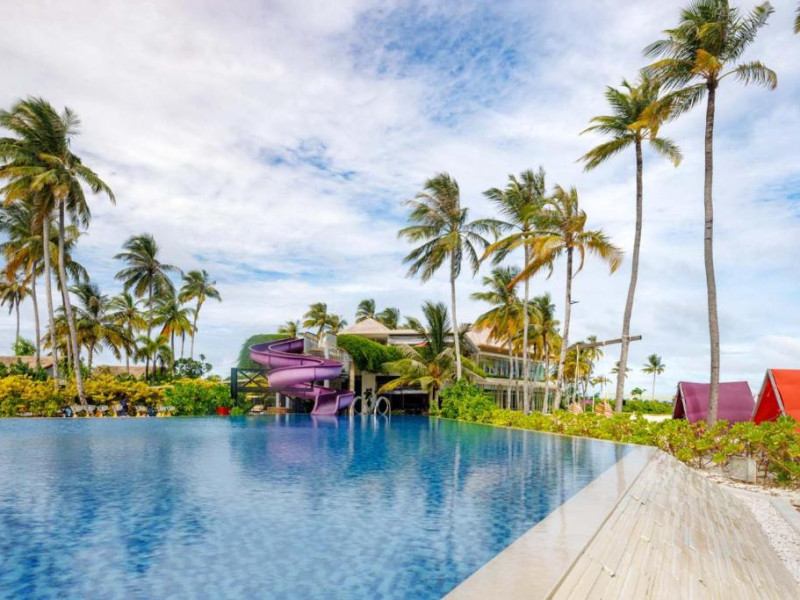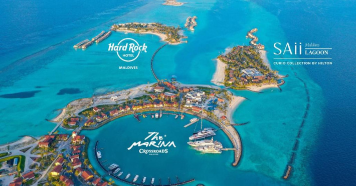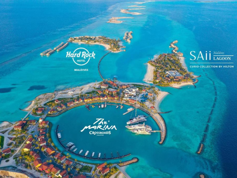 Hotelul Hard Rock Hotel Maldives este situat in interiorul Lagunei Emboodhoo și oferă o piscină mare cu vedere la ocean, cu tobogan și difuzoare subacvatice, Rock Spa, sală de gimnastică Body Rock, Rock Shop, Hard Rock Café și acces direct la portul de agrement @ CROSSROADS.