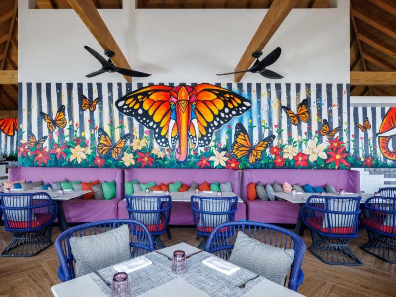 Restaurantul deschis pe toată durata zilei de la Hard Rock Hotel Maldives oferă mic dejun tip bufet in fiecare dimineață, iar oaspeții au la dispoziție diferite opțiuni de preparate culinare și băuturi, inclusiv la restaurantul Pan - Latin American.