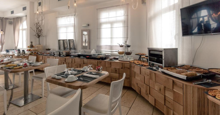La Harmony Boutique oaspeții au la dispoziție un restaurant care servește mâncare à la carte. Preparate din bucătăria grecească așteaptă să fie degustate în fiecare zi. Masa poate fi servită atât în interior, cît si în aer liber, pe terasă, în funcție de vreme. 2 baruri, dintre care unul la piscină, sunt disponibile cu o ofertă variată de băuturi răcoritoare și alcoolice.