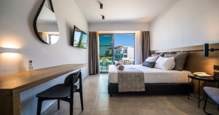 DOTARI CAMERE: Camerele acestui hotel sunt echipate cu aer conditionat, dulap pentru haine, cutie de valori, televizor cu ecran plat, terasa si baie privata cu bideu. Exista camere la HARMONY CREST RESORT & SPA Adults Only care ofera o frumoasa panorama la mare, fiecare camera fiind dotata cu un balcon. Lenjeria de pat si prosoapele sunt incluse in dotarile camerelor.