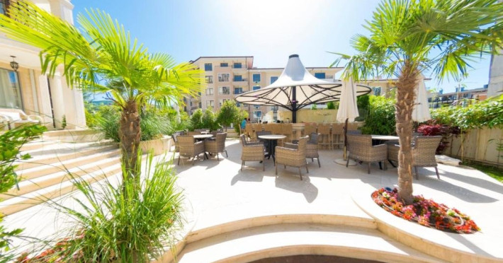 Localizare: Harmony Suites Saint Vlas este un complex de apartamente situate in statiunea Sveti Vlas. Complexul este situat la 5 minute de mers pe jos de plaja.Facilitati hotel: Complexul pune la dispozitia clientilor: piscina in aer liber, Wi-Fi, jacuzzi, zona de gratar, loc de joaca pentru copii, parcuri luxuriante pentru plimbari, hamam, spalatorie (contra cost), restaurante, baruri.