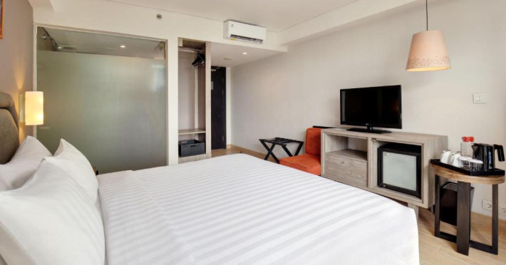 Camerele cu aer condiționat de la Hotelul Harper Kuta by ASTON sunt dotate cu TV cu ecran plat și canale prin cablu, seif, birou și minibar cu fierbător electric. Baia privată este dotată cu uscător de păr, articole de toaletă gratuite și duș.