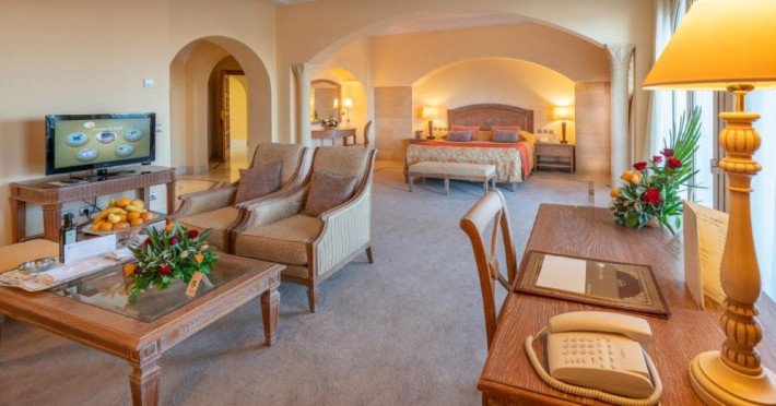 Toate camerele hotelului sunt dotate cu balcon sau terasa mobilata, aer condiționat, Wifi, seif, minibar (băuturi USD), fierbător și set de ceai, TV, cadă/ duș, uscător de păr, halate de baie și papuci, articole de toaletă (reumplute zilnic).
