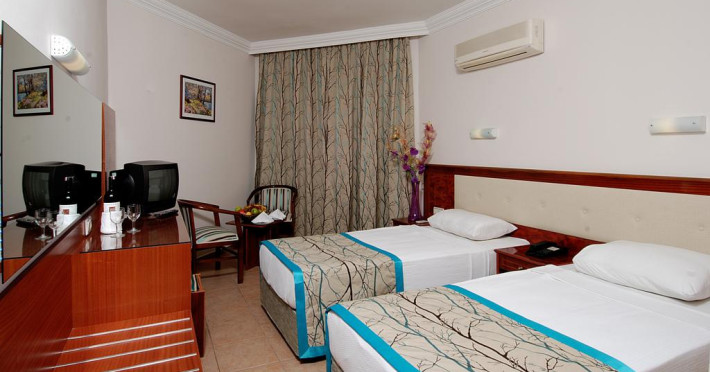 Unele camere au balcon cu vedere la mare sau la piscină. Camerele confortabile de la Hatipoglu Beach Hotel au pardoseală de gresie/ marmură, aer condiționat, Tv cu canale prin satelit și seif. Fiecare cameră dispune de minibar. Oaspeții pot solicita serviciul de room service pentru a servi masa sau diverse băuturi. În camere există baie cu cadă sau duș ce are în dotare foehn și articole de toaletă gratuite. Curățenia in cameră se face zilnic. Toate camerele spațioase de la Hatipoglu Beach Hotel au zonă de relaxare. Proprietatea oferă camere pentru nefumători.