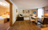 Unele au balcon cu vedere la Alpi. Micul dejun tip bufet cu produse regionale este servit in sala de mic dejun de la Haus Stefanie, cu vedere la munții din jur.