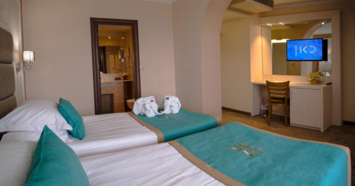 Facilități hotel: 2 restaurante, 3 baruri, casino, piscină exterioară, salon de masaj, loc de joacă pentru copii, sală fitness, birou de schimb valutar, magazin, birou de rent a car, internet wi-fi in zonele publice, cameră de bagaje, receptie deschisă nonstop.