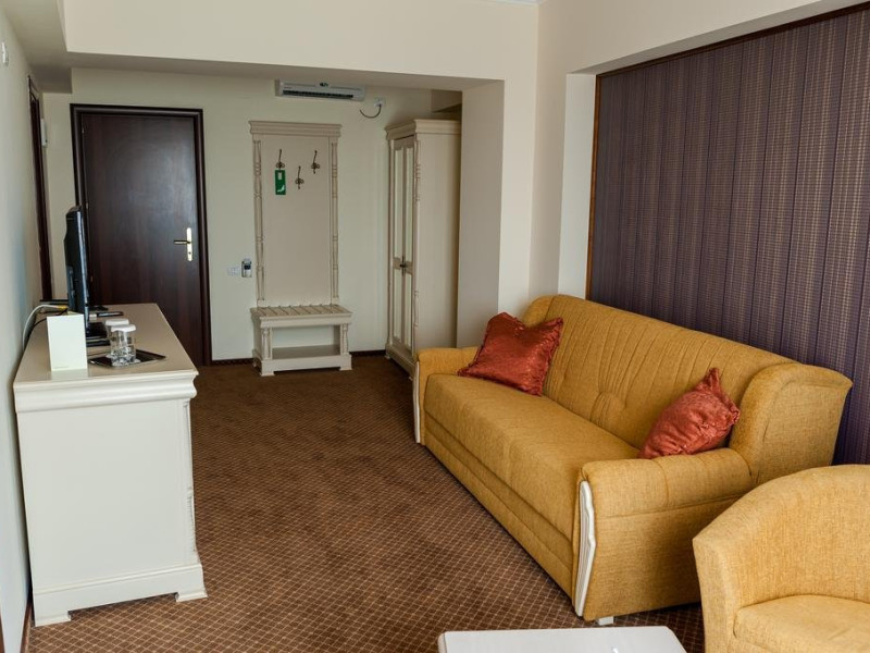 - Apartamentele au o suprafata de 45 mp, si sunt compuse din living cu canapea extensibila si dormitor cu pat matrimonial (cele doua camere sunt despartite de usa), dressing atat in living cat si in dormitor, masuta de toaleta cu oglinda in dormitor, sistem de acces pe baza de cartela magnetica, instalatie de climatizare, Led TV cu canale prin cablu premium, atat in living cat si in dormitor, internet wireless de mare viteza, minibar, seif, baie cu cabina de dus si uscator de par, obiecte de igiena, 2 telefoane (in camera si in baie), prosoape de plaja, papuci si halat de baie, balcon mobilat cu mobilier de terasa (accesul se face din ambele camere pe balcon), au vedere frontala la mare.